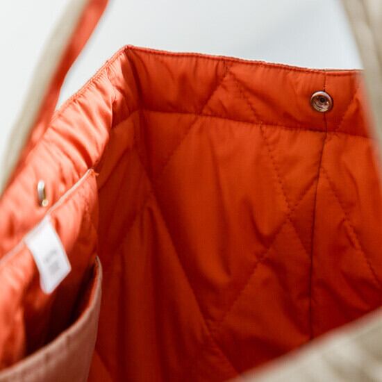 中のスナップボタンの止める位置を変えるだけで形を変化できる2way仕様 スタイリングに合わせてバッグの形を変えて楽しむことができます