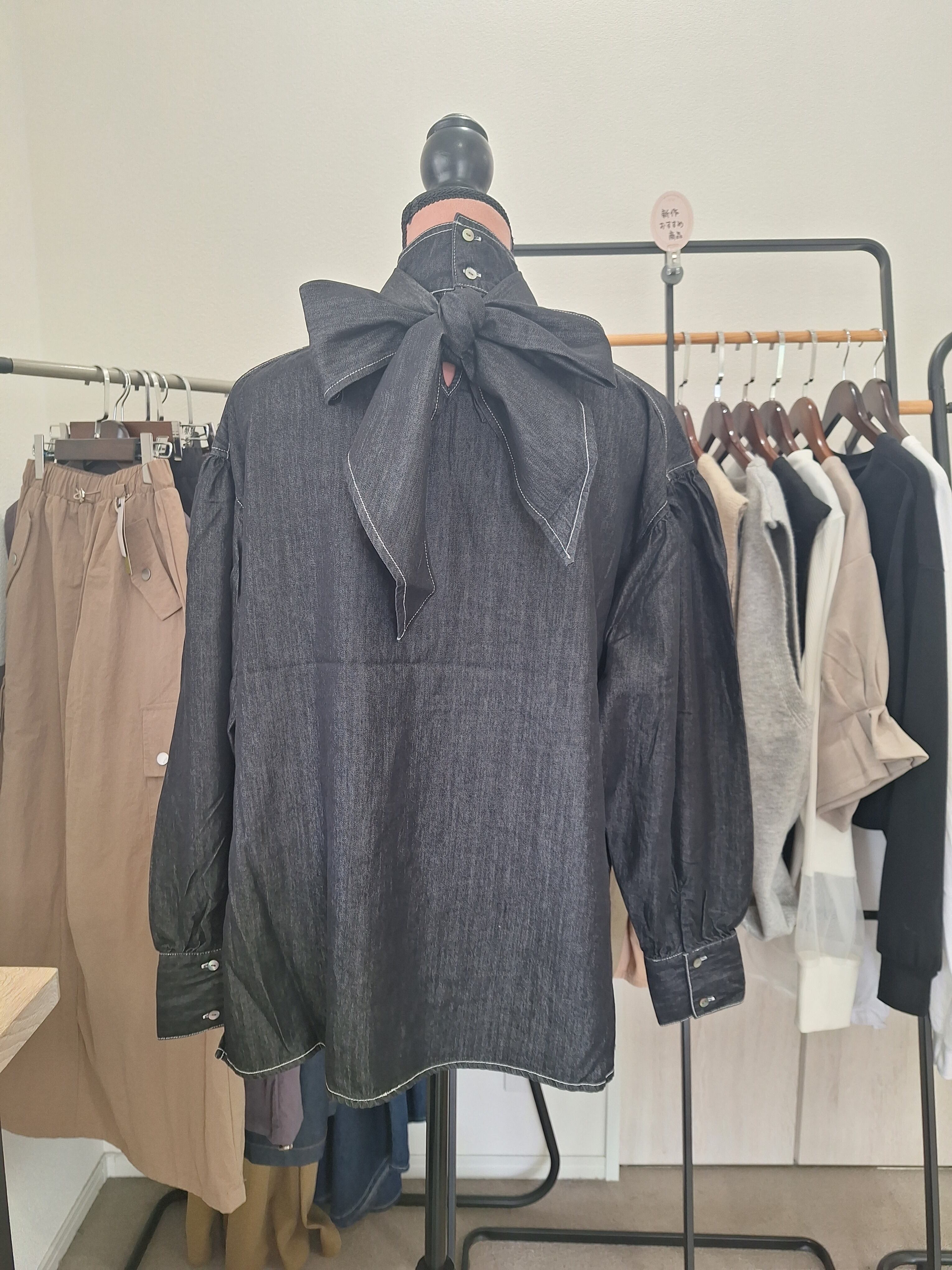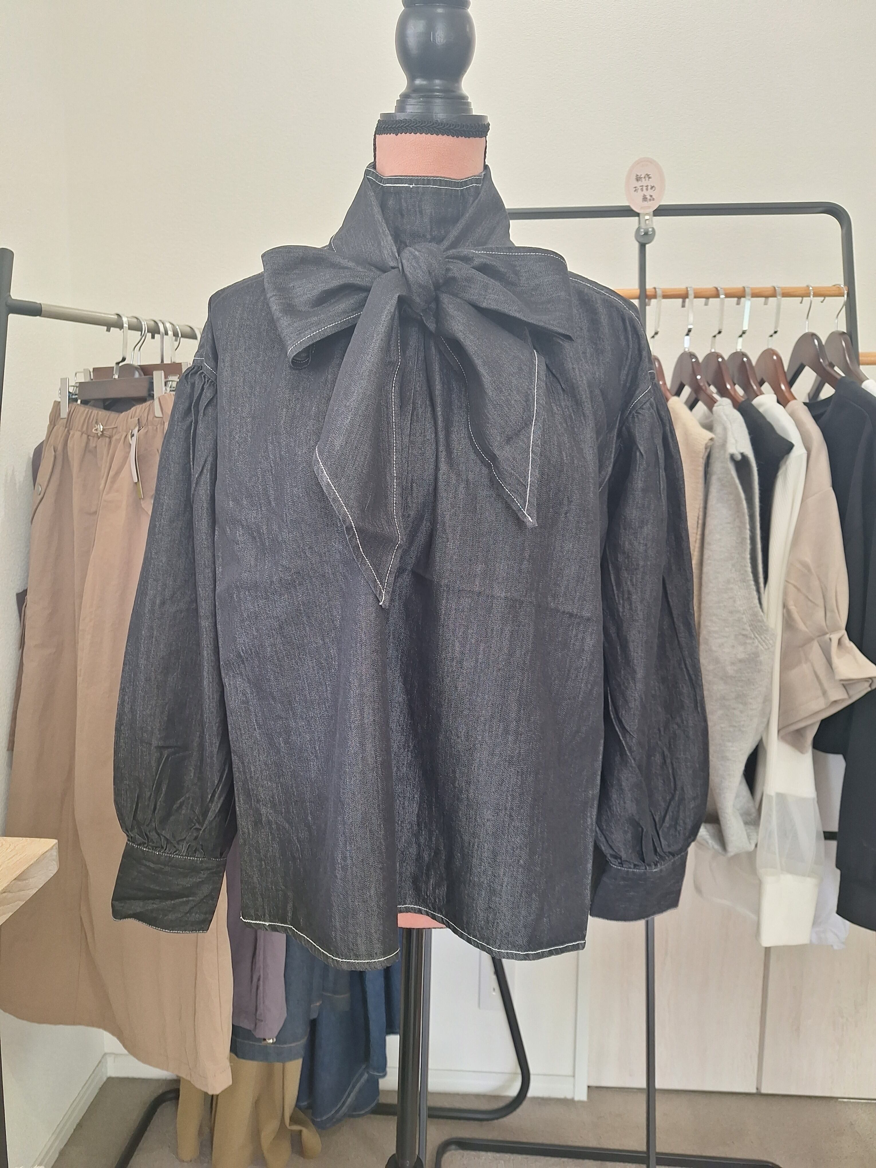 新作 テンセルデニム/ツイル ボウタイ付きブラウス