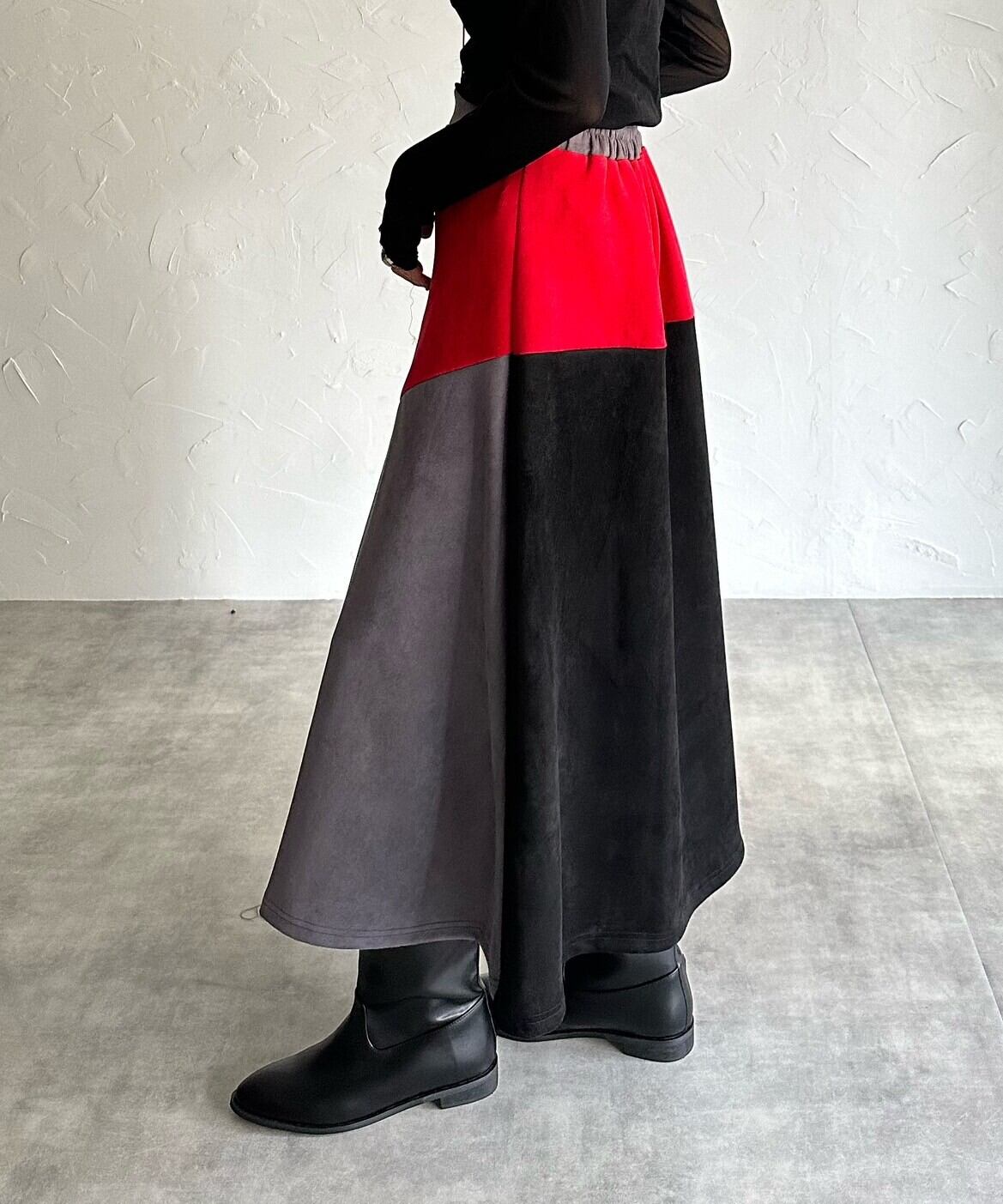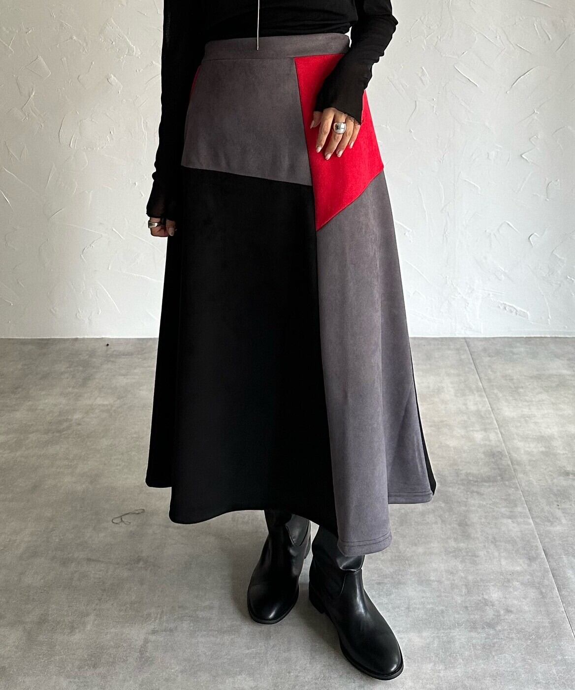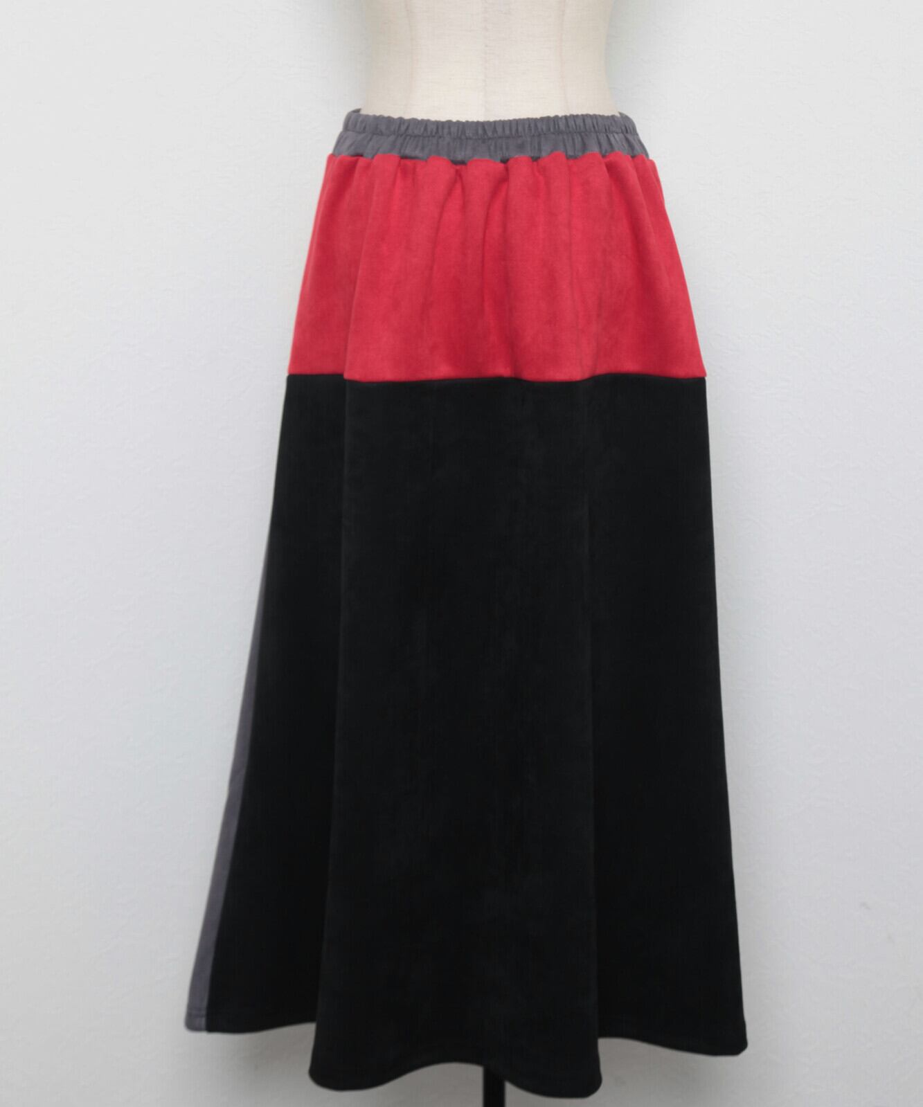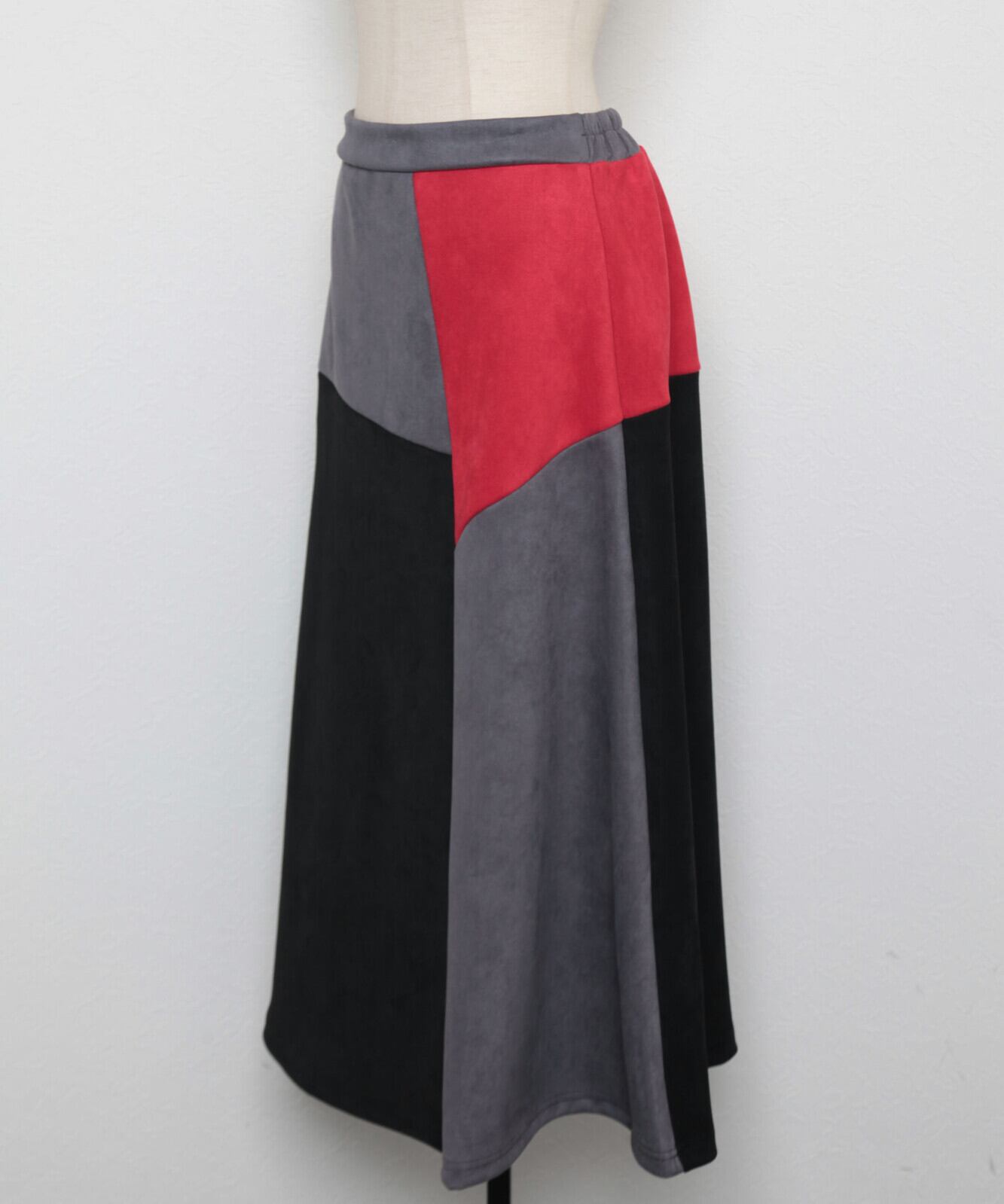 ビビッドな色使いが目を引く、新作のブロック配色スエードスカートです。スエード素材のふんわりとした質感が女性らしさを引き立てます。カラフルな配色によって、トレンド感と華やかさが演出されます。シンプルなトップスと合わせるだけでも、おしゃれなコーディネートが完成します。また、シルエットにもこだわり、ふんわりと広がるAラインシルエットが、体型カバーにもなります。程よい丈感も◎で、さまざまなシーンで活躍します。